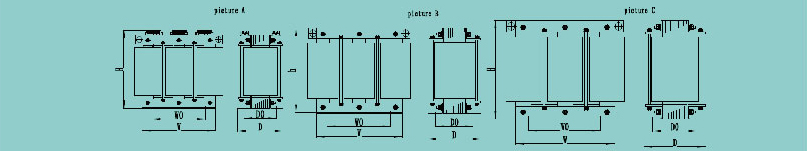 | 三相隔离变压器型号 | 图号 | 逆变器功率(KW) | 额定输出电流(A) | 三相输入电压 | 三相输出电压 | 变压器效率 | 重量 (KG) |
